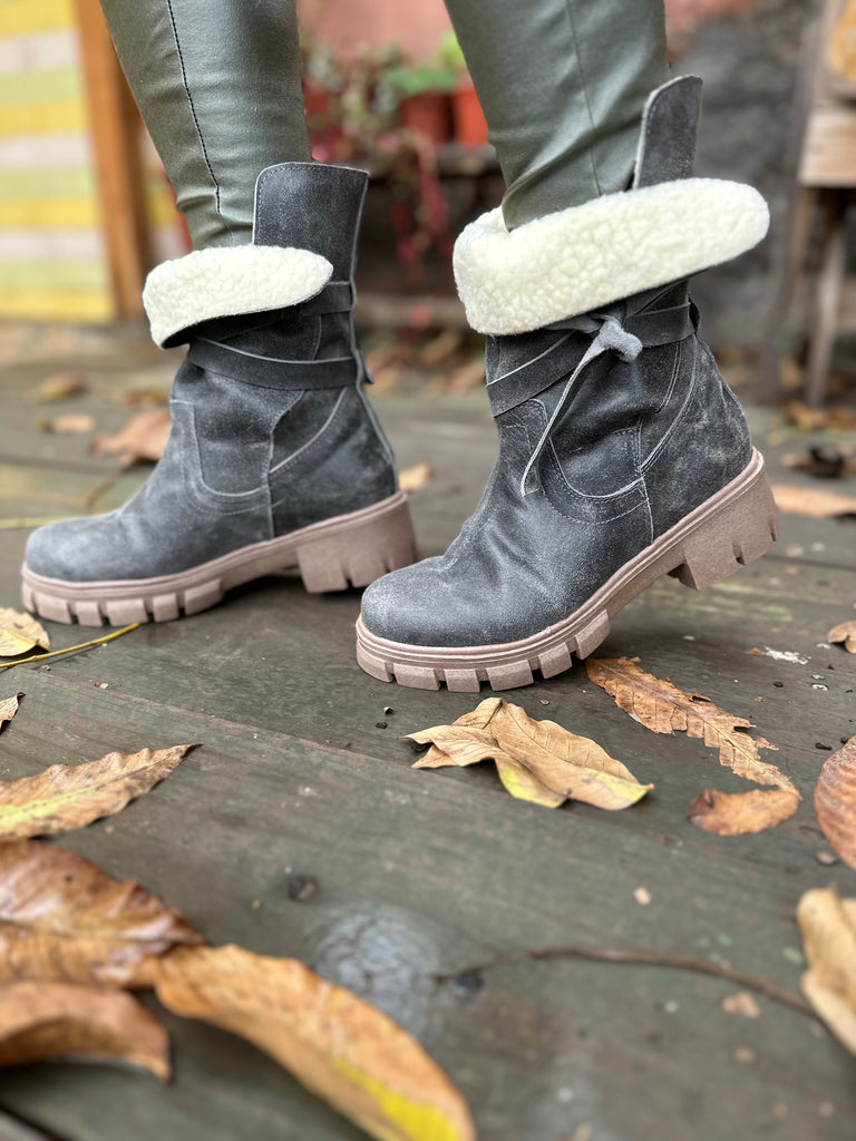 Bota achiporrada color gris.