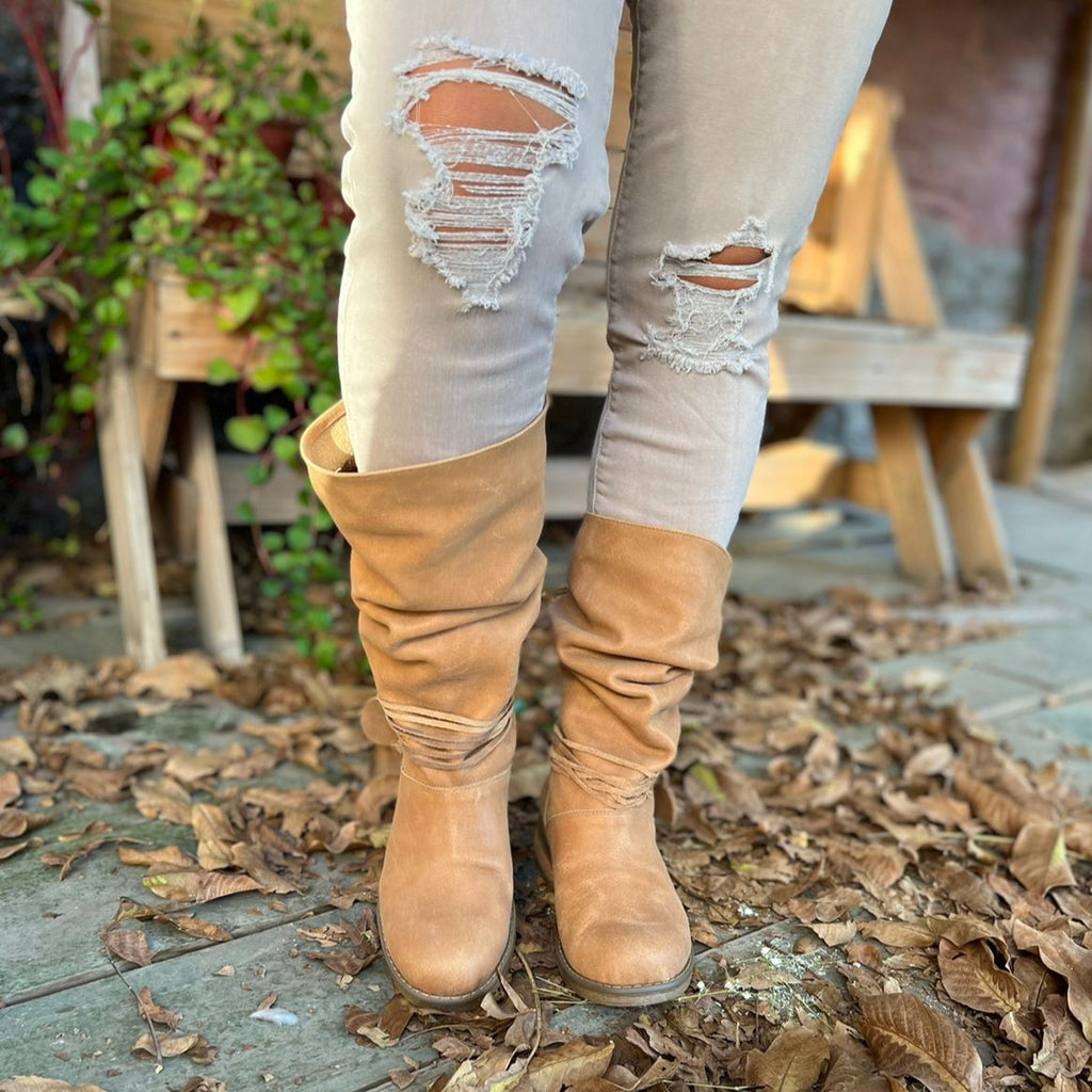 Esta bota la puedes usar larga y también arrugada dando el estilo que desees a tu outfit.